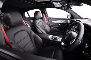 ดีไซน์ภายใน เบาะนั่งหุ้มหนังแบบ AMG Sport seat ตัดสลับ DINAMICA microfibre ตกแต่งด้วยด้ายสีแดง เพิ่มความเร้าใจด้วย AMG Carbon-fibre โดยเบาะนั่งสำหรับผู้ขับขี่และผู้โดยสารด้านหน้าปรับระดับด้วยระบบไฟฟ้า พร้อมหน่วยบันทึกความจำ, ชุดคันเร่งและแป้นเบรกแบบสปอร์ต, พวงมาลัยมัลติฟังก์ชันแบบสปอร์ตท้ายตัด หุ้มด้วยหนัง nappa คุณภาพสูง, พวงมาลัยนิรภัยพร้อมพาวเวอร์ ปรับน้ำหนักตามความเร็วรถ, กาบบันได สเตนเลส พร้อมสัญลักษณ์ AMG แบบเรืองแสง, ระบบกุญแจแบบ KEYLESS-GO รวมถึงไฟเรืองแสงล้อมรอบห้องโดยสารแบบ 3 สี และอุปกรณ์มัลติมีเดีย อย่าง วิทยุ-ซีดี MB Audio 20, ระบบเสียงรอบทิศทาง Burmester®, ระบบควบคุมและสั่งงานด้วย touchpad, ระบบสำหรับเชื่อมต่อโทรศัพท์เคลื่อนที่ (Bluetooth), ฟังก์ชันเชื่อมต่อโทรศัพท์มือถือระบบปฏิบัติการ iOS (Apple CarPlay™) รวมถึงหลังคาพาโนรามิคซันรูฟ เลื่อนเปิด-ปิดได้ด้วยระบบไฟฟ้า
