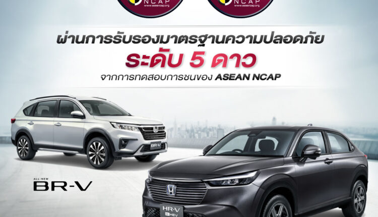 บริษัท ฮอนด้า ออโตโมบิล (ประเทศไทย) จำกัด ประกาศความสำเร็จของยนตรกรรมในไลน์อัปเอสยูวี ฮอนด้า เอชอาร์-วี อี:เอชอีวี ใหม่ และ ฮอนด้า บีอาร์-วี ใหม่ เจเนอเรชันที่ 2 ที่ผ่านการรับรองมาตรฐานความปลอดภัยระดับ 5 ดาว จากการทดสอบการชนของ ASEAN NCAP