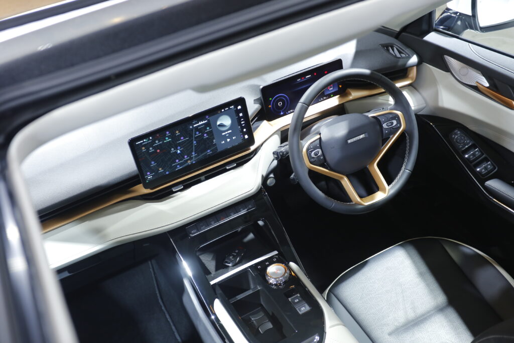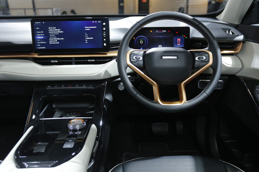 All New HAVAL H6 Plug-in Hybrid SUV รถยนต์เอสยูวีพลังงานไฟฟ้าแบบเสียบปลั๊ก มาพร้อมมิติตัวรถขนาดกว้างขวาง ดีไซน์ด้านหน้าแบบ Star Matrix ล้ำสมัย ไฟหน้า Intelligent LED Headlamp โดดเด่นสะดุดตา หลังคาซันรูฟแบบพาโนรามิค 360 องศา เข้าทรงกับสปอยเลอร์ท้ายและเสาอากาศแบบ shark fin พร้อมระบบประตูท้ายเปิด-ปิดไฟฟ้าและระบบแฮนด์ฟรี เสริมด้วยไฟท้าย LED Taillight Strip เป็นแนวยาว และล้ออัลลอยลายสปอร์ตขนาด 19 นิ้ว ขณะที่การออกแบบภายใน เน้นความกว้างขวาง สะดวกสบาย ด้วยคอนโซลหน้าสีทูโทน ครบครันด้วยฟังก์ชันอำนวยความสะดวกมากมายในระหว่างเดินทาง ไม่ว่าจะเป็น หน้าจออัจฉริยะ 3 จอเพื่อการเข้าถึงข้อมูลและความบันเทิงได้อย่างง่ายดายและแม่นยำ เบาะนั่งไฟฟ้าคู่หน้า พร้อมระบบระบายอากาศ เบาะนั่งโดยสารด้านหลังพร้อมที่เท้าแขนกลาง แท่นชาร์จไร้สาย กุญแจ Smart Key และระบบ Push Start