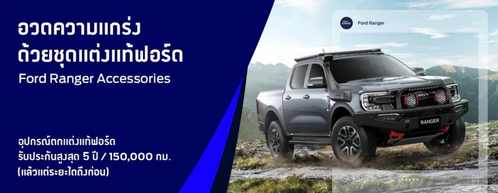 – ฟอร์ด ประเทศไทย ยกขบวนอุปกรณ์ตกแต่งมาเอาใจลูกค้าฟอร์ด เรนเจอร์ และฟอร์ด เอเวอเรสต์ เจเนอเรชันใหม่ ที่ชื่นชอบการแต่งรถให้มีเอกลักษณ์เฉพาะตัวตรงตามไลฟ์สไตล์ไม่ว่าจะเป็นการทำงาน การใช้ชีวิตกับครอบครัว หรือการเดินทางท่องเที่ยวพักผ่อน โดยฟอร์ดมีหลากหลายอุปกรณ์ตกแต่ง ทั้งอุปกรณ์ตกแต่งแท้จากฟอร์ด รวมถึงอุปกรณ์ตกแต่งพิเศษสำหรับคอออฟโรดจากผู้ผลิตอุปกรณ์ตกแต่งชั้นนำอย่าง ARB ให้ลูกค้าเลือกปรับแต่งรถได้ตามความต้องการมากยิ่งขึ้น