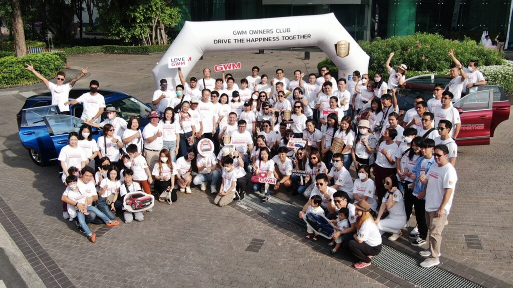 กิจกรรม GWM Owners Club – Drive the Happiness Together จัดขึ้นเพื่อเฉลิมฉลองการครบรอบ 1 ปีของ HAVAL Owners Club Thailand คอมมูนิตี้ผู้ใช้รถยนต์ HAVAL ทั้ง HAVAL H6 และ HAVAL JOLION ที่รวมตัวผ่านกิจกรรมบน GWM Application ซึ่งเปิดพื้นที่ให้เจ้าของรถยนต์ได้แบ่งปันเรื่องราวและทำกิจกรรมที่ชื่นชอบหรือมีความสนใจร่วมกัน อาทิ การท่องเที่ยว ร้านอาหาร กีฬา ตลอดจนกิจกรรมเพื่อสังคม โดยมีเกรท วอลล์ มอเตอร์ทำหน้าที่เป็นผู้อำนวยความสะดวกในด้านต่างๆ กิจกรรมในครั้งนี้ได้สร้างประสบการณ์ ความสุข รอยยิ้ม และความทรงจำที่ดีระหว่างคณะผู้บริหารของเกรท วอลล์ มอเตอร์ นำโดย มร. ไมเคิล ฉง ผู้จัดการทั่วไป นายณรงค์ สีตลายน กรรมการผู้จัดการ ทีมผู้บริหาร เกรท วอลล์ มอเตอร์ (ประเทศไทย) และผู้ใช้งาน HAVAL H6 และ HAVAL JOLION ทั้งหมด 60 ครอบครัว