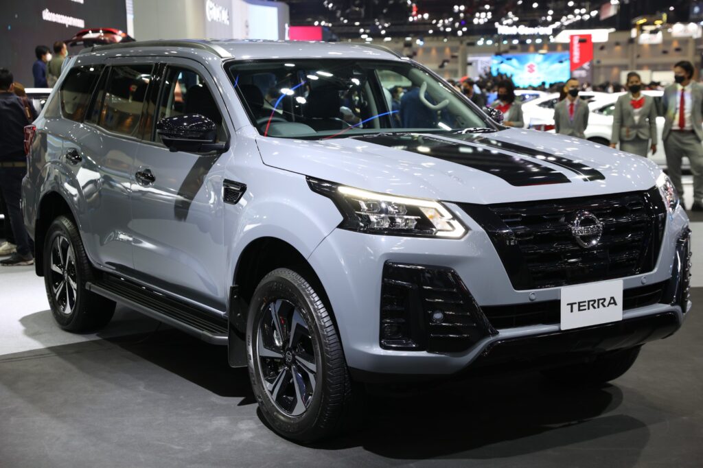 นิสสัน เทอร์ร่า รถยนต์อเนกประสงค์ระดับพรีเมี่ยมสำหรับทุกคนในครอบครัว โดดเด่นด้วยดีไซน์มีระดับ มาพร้อมเทคโนโลยีความปลอดภัยและความบันเทิงครบครัน ทำให้เป็นเอสยูวีที่เหมาะสำหรับทุกคนในครอบครัว มีพื้นที่ภายในห้องโดยสารกว้างขวางนั่งสบายทั้งครอบครัวตลอดการเดินทางทั้งใกล้ไกล เครื่องยนต์ 2.3L เทอร์โบคู่ แรงม้าสูงสุด 190 แรงม้า แรงบิดสูงสุด 450 นิวตัน-เมตร พร้อมเกียร์อัตโนมัติแบบ 7 สปีด และโหมดแมนนวล รองรับน้ำมันดีเซลได้ทั้ง B7, B10 และ B20 และยังประหยัดเชื้อเพลิงได้อย่างน่าประทับใจ นอกจากนี้ ยังมีโหมดการขับขี่แบบขับเคลื่อนสี่ล้อ (4WD) ที่ช่วยให้ผู้ขับขี่และผู้โดยสารสามารถเดินทางไปได้ทุกที่ และปลอดภัยด้วยเทคโนโลยีความปลอดภัยรอบคัน 360° Safety Shield พร้อมพาครอบครัวเดินทางสู่จุดหมายปลายทางอย่างปลอดภัย และยังเพลิดเพลินตลอดการเดินทาง ด้วยระบบเครื่องเสียง BOSE ที่ติดตั้ง 8 ตำแหน่งรอบคัน ทั้งนี้ ผู้โดยสารด้านหลังยังรับชมความบันเทิงออนไลน์ได้ตามต้องการผ่านหน้าจอขนาด 11 นิ้ว พร้อมการเชื่อมต่อ HDMI หรือสมาร์ททีวี