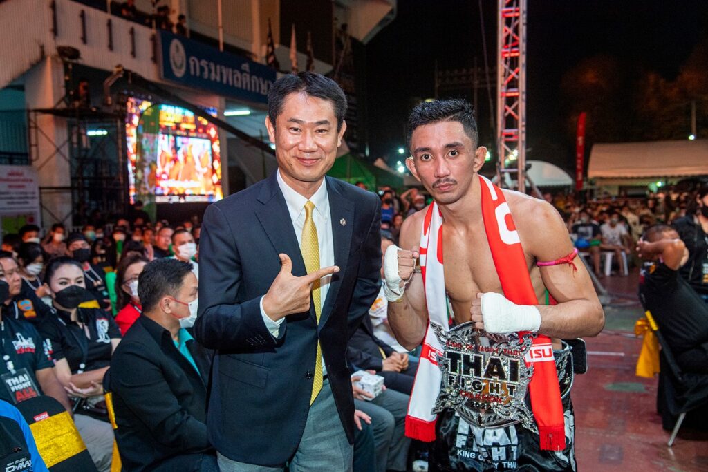 อีซูซุร่วมแสดงความยินดีกับ 3 นักมวยไทยที่สามารถครองถ้วยพระราชทานพระบาทสมเด็จพระเจ้าอยู่หัวได้เป็นผลสำเร็จ ในการแข่งขันมวยไทยระดับโลก “THAI FIGHT 2022” รอบชิงชนะเลิศ ภายใต้ชื่องาน “THAI FIGHT 100 ปี นครบาล” เนื่องในโอกาสที่กองบัญชาการตำรวจนครบาล ครบรอบ 100 ปี ซึ่งจัดขึ้นอย่างยิ่งใหญ่ จัดเต็มแสงสีเสียงสุดอลังการเอาใจคนกรุงเทพฯ ณ ลานหน้าอาคารนิมิบุตร สนามกีฬาแห่งชาติ กรุงเทพมหานคร