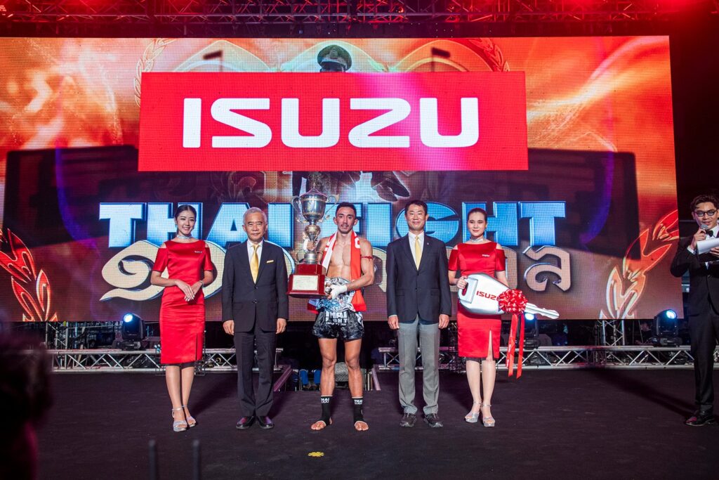 มร. ทาคาชิ ฮาตะ กรรมการผู้จัดการ บริษัท ตรีเพชรอีซูซุเซลส์ จำกัด เผยว่า “อีซูซุภาคภูมิใจที่ได้มีส่วนร่วมสนับสนุนการแข่งขันมวยไทยระดับโลก THAI FIGHT มาโดยตลอด และปีนี้ถือเป็นอีกหนึ่งปีที่ภูมิใจอย่างมากเมื่อนักชกไทยแชมป์อีซูซุคัพซูเปอร์ไฟต์ 2022 เพชรธงชัย ที.บี.เอ็ม. ยิม ได้แสดงความสามารถอันโดดเด่นและยอดเยี่ยม คว้าถ้วยพระราชทานของพระบาทสมเด็จพระเจ้าอยู่หัวมาให้คนไทยได้สำเร็จ ขอบคุณสำหรับแรงเชียร์และแรงสนับสนุนอีซูซุและไทยไฟท์มาโดยตลอดและหวังเป็นอย่างยิ่งว่าผู้ชมทุกท่านจะสนับสนุน “Isuzu Cup 2023” & “Thai Fight 2023″ เป็นอย่างดีต่อไป”