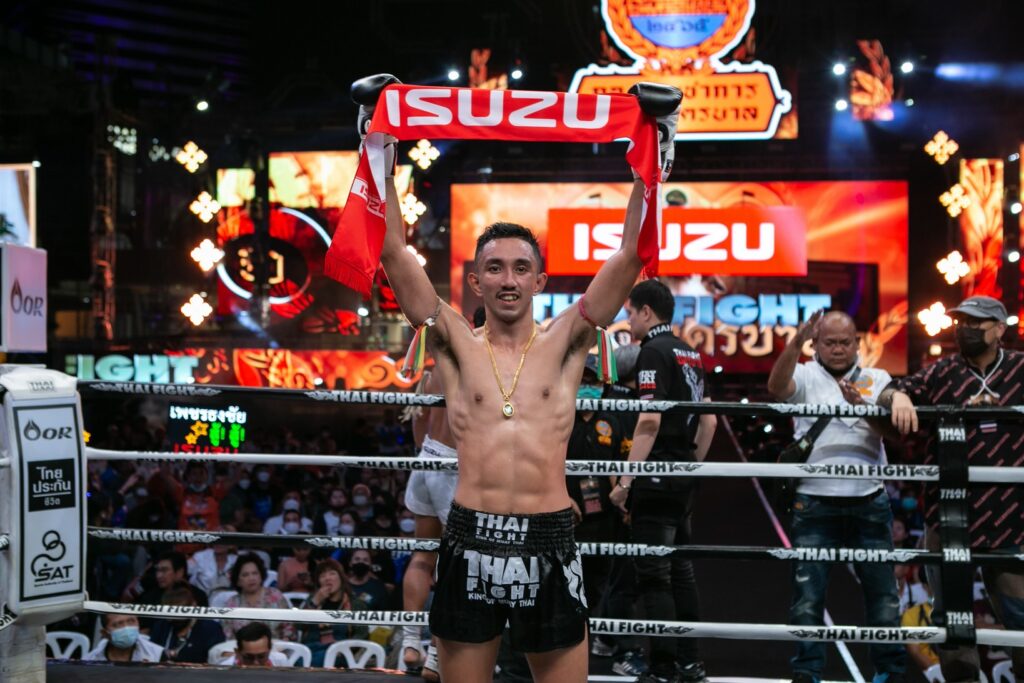 การแข่งขัน “THAI FIGHT 2022” รอบชิงชนะเลิศ ได้รับความสนใจจากแฟนมวยมากมาย ทั้งคนไทยและต่างชาติ เดินเรียงแถวเข้าชมกันอย่างเนืองแน่น พร้อมส่งเสียงเชียร์ดังกระหึ่ม เมื่อเสียงระฆังคู่เด่นของงานเริ่มขึ้นระหว่าง “เพชรธงชัย ที.บี.เอ็ม.ยิม” แชมป์อีซูซุคัพซูเปอร์ไฟต์ ปี 2022 ขึ้นชกแบบสวมนวม รุ่นเวลเทอร์เวท นํ้าหนัก 67 กิโลกรัม เพชรธงชัยเปิดเกมด้วยแข้งขวานำ แล้วแลกแข้งกันอย่างดุเดือดและสูสี จนมาได้คะแนนนำในยกสุดท้ายด้วยลูกเตะที่เข้าเป้าอย่างจัง ทำให้สามารถโค่น ธีรเดช ช.ห้าพยัคฆ์ นักชกชาวไทย คว้าชัยชนะด้วยคะแนนเป็นเอกฉันท์ ได้รับรางวัลถ้วยพระราชทานพระบาทสมเด็จพระเจ้าอยู่หัว พร้อมด้วยรถปิกอัพ อีซูซุ ดีแมคซ์ ไฮแลนเดอร์ 2 ประตู 1.9 Ddi รุ่น L DA เกียร์ธรรมดา 6 สปีด ไปครอง