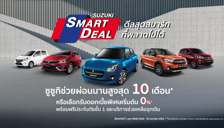 ‘ซูซูกิ’ จัดแคมเปญหนัก “SUZUKI SMART DEAL” ดีลสุดสมาร์ทที่พลาดไม่ได้ ช่วยผ่อนทันที 10 เดือน สุดพิเศษ ดอกเบี้ย 0% สูงสุด 48 เดือน