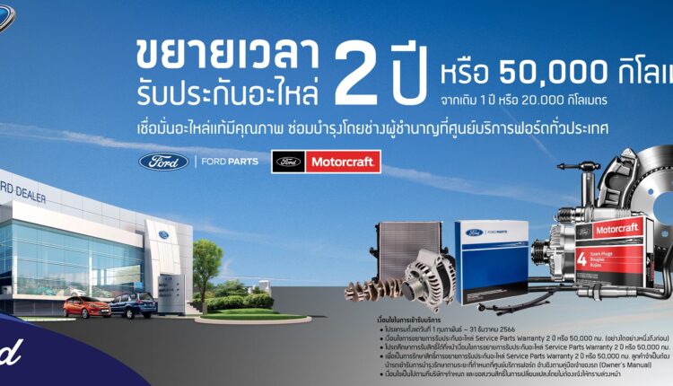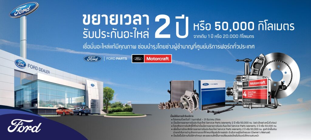 – ฟอร์ด ประเทศไทย มอบสิทธิขยายการรับประกันอะไหล่ (Service Parts Warranty) สูงถึง 2 ปี หรือ 50,000 กิโลเมตร แล้วแต่ระยะใดจะถึงก่อน เพื่อเสริมความมั่นใจแก่เจ้าของรถยนต์ฟอร์ด ตอกย้ำความมุ่งมั่นในการดูแลลูกค้าเสมือนคนในครอบครัว ลูกค้าที่นำรถยนต์ฟอร์ดเข้ารับบริการเปลี่ยนอะไหล่แท้ฟอร์ด (Ford Genuine Parts) หรือฟอร์ดมอเตอร์คราฟท์ (Ford Motorcraft) จะได้รับสิทธิขยายการรับประกันอะไหล่ตั้งแต่วันนี้ ถึง 31 ธันวาคม 2566 ณ ศูนย์บริการฟอร์ดทั่วประเทศ