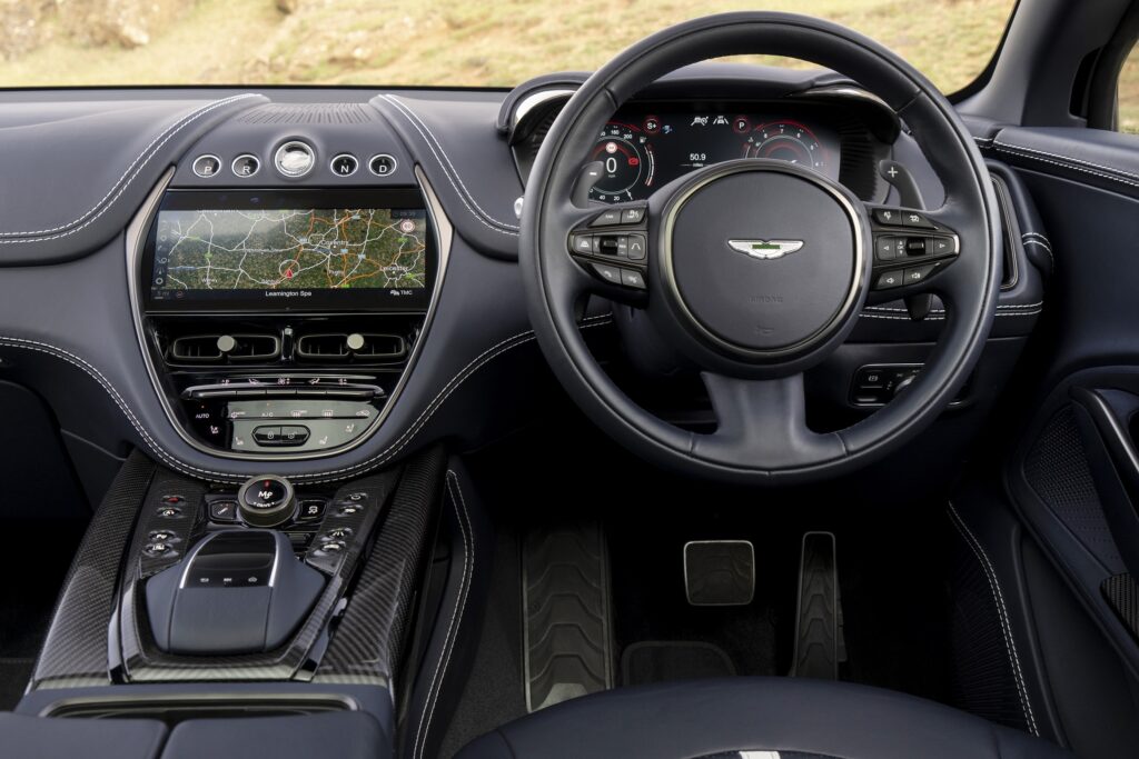 ห้องโดยสารของ แอสตัน มาร์ติน ดีบีเอ็กซ์707 ถูกปรับแต่งให้มีอารมณ์สปอร์ตเต็มพิกัด ตกแต่งด้วยอัลคันทารา พร้อมเบาะคู่หน้าแบบสปอร์ต โอบกระชับผู้ขับขณะเข้าโค้งด้วยความเร็วสูง บริเวณคอนโซลกลางเพิ่มปุ่มควบคุม Adaptive Drive Modes ที่มีเฉพาะ ดีบีเอ็กซ์707 แบ่งเป็น Terrain, GT, Individual, Sport และ Sport+