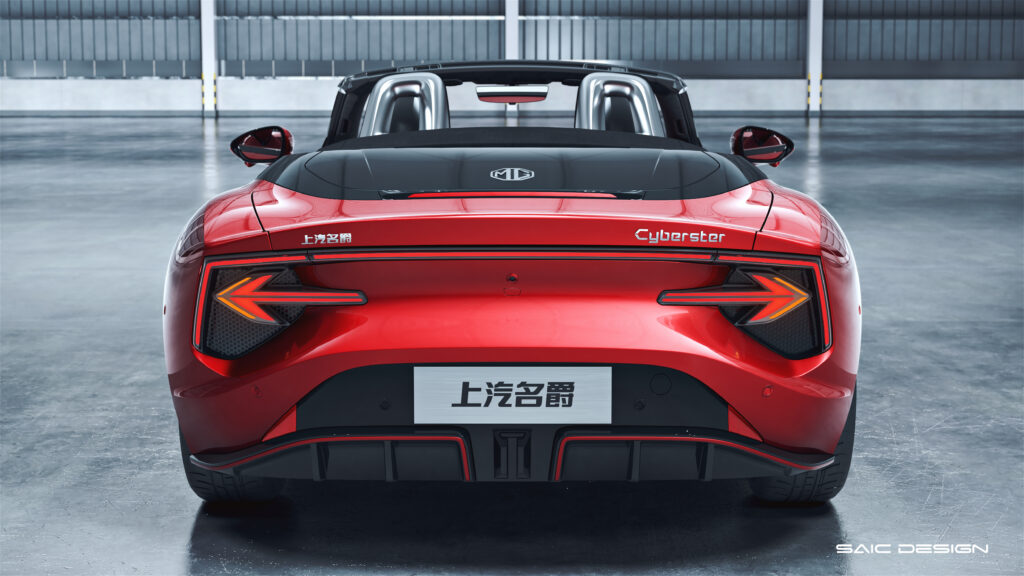 สำหรับโรดสเตอร์ไฟฟ้ารุ่นนี้ บริเวณกระจังหน้า และแผงกันชนหน้า ได้รับการออกแบบด้วยดีไซน์ “Wind Hunter” ในขณะที่รูปลักษณ์ของไฟหน้าถูกออกแบบให้ดูมีขนาดใหญ่ ซึ่งสร้างความโดดเด่นให้กับ MG Cyberster เป็นอย่างยิ่ง และอีกหนึ่งองค์ประกอบด้านการออกแบบที่น่าสนใจ คือ เส้นด้านข้างของตัวรถบริเวณใต้กรอบกระจกที่มีดีไซน์แบบ “Leopard Jump Shoulder Line” มุ่งเน้นให้เห็นรูปร่างอันแข็งแกร่ง และทรวดทรงที่งดงามสะท้อนถึงความแข็งแกร่งและช่วยให้รถมีศูนย์ถ่วงต่ำ ด้านท้ายของ MG Cyberster ถูกออกแบบในสไตล์ Kammback Design โดยท้ายจะมีลักษณะลาดตัดสั้น และส่วนโค้งด้านหลังตัวรถที่ยกขึ้นเล็กน้อยคล้ายหางเป็ด (Duck Tail) ช่วยให้ด้านหลังของรถดูโดดเด่น ควบคู่ไปกับการยกระดับคุณสมบัติด้านอากาศพลศาสตร์ของตัวรถ ทั้งนี้ MG Cyberster มีกำหนดเปิดโฉมคันจริงและจัดจำหน่ายอย่างเป็นทางการภายในปี 2566