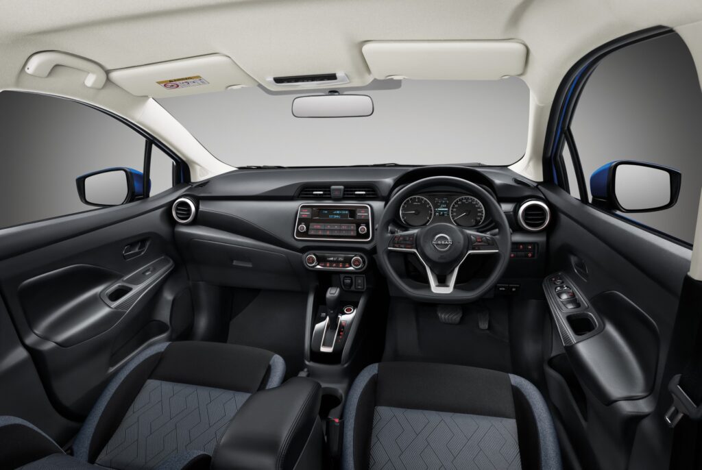 นิสสันปรับปรุงโฉม อัลเมร่าใหม่ ให้ดูทันสมัย โดดเด่น สะท้อนแนวคิด Next-generation V-motion เทรนด์การออกแบบรถยนต์ในอนาคตของนิสสันได้อย่างชัดเจน โดย V-motion ไม่ได้จำกัดเฉพาะกระจังหน้าเท่านั้น แต่เป็นการเปลี่ยนดีไซน์ด้านหน้าทั้งหมดให้โดดเด่นขึ้น ทุกรายละเอียดตั้งแต่กระจังหน้า โลโก้ใหม่ กระโปรงหน้า ไปจนถึงเสา A-pillar มีความชัดเจนมากขึ้น ทรงพลัง ปราดเปรียวสื่อถึงความมีสไตล์และให้ประสบการณ์ในการขับขี่ที่น่าประทับใจ แนวคิดการออกแบบ V-motion ยังคงลื่นไหลต่อเนื่องไปยังเส้นกรอบหลังคา ด้านข้าง และด้านหลัง สะดุดตาแม้จะมองจากระยะไกล ส่วนภายในตัวรถ ยังมีการเพิ่มความทันสมัยกับการตกแต่งที่แผงคอนโซลหน้ารูปปีกที่สยายออก (gliding wing) และที่แผงประตูด้วยวัสดุสีน้ำเงินเข้ม เพิ่มความเก๋ ทันสมัย เสริมอารมณ์สปอร์ตให้กับห้องโดยสาร