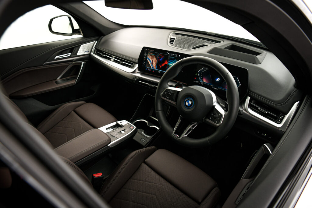 บีเอ็มดับเบิลยู X1 xDrive30e M Sport มีมาให้เลือก 4 สี ได้แก่ สีขาว Alpine White Solid สีดำ Black Sapphire Metallic และสีเงิน Space Silver Metallic บุภายในด้วยหนัง Sensatec Perforated สีมอคค่า ในขณะที่ตัวถังภายนอก