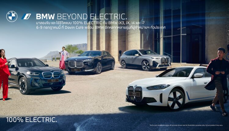 บีเอ็มดับเบิลยู ประเทศไทย ยกทัพยนตรกรรมไฟฟ้าสู่งาน BMW Beyond Electric ครั้งแรกของการรวบรวมรถยนต์ไฟฟ้าบีเอ็มดับเบิลยู ‘i’ หลากหลายรุ่นมาให้ลูกค้าได้ทดลองขับในที่เดียว สัมผัสสุดยอดเทคโนโลยีการขับเคลื่อนไฟฟ้าที่มาพร้อมสมรรถนะและความสะดวกสบาย เปิดประสบการณ์การขับขี่เหนือระดับ Sheer Driving Pleasure ตามแบบฉบับของรถยนต์บีเอ็มดับเบิลยูแบบไร้มลพิษ พร้อมเพลิดเพลินไปกับกิจกรรมและข้อเสนอสุดพิเศษจากบีเอ็มดับเบิลยู ณ ร้านอาหาร Davin Café ระหว่างวันที่ 6 – 9 กรกฎาคม พ.ศ. 2566