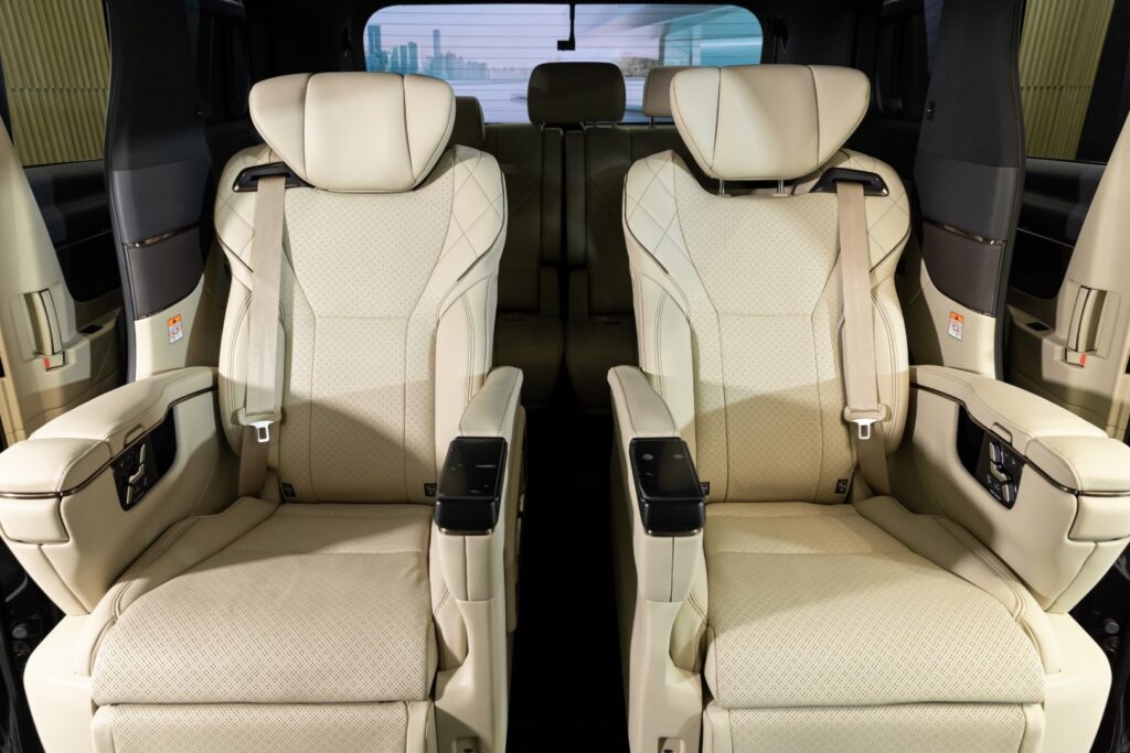 เบาะนั่งผู้โดยสารแถวสองแยกอิสระ แบบ Executive Lounge ปรับได้ 10 ทิศทาง เบาะรองน่องปรับไฟฟ้า ระบบนวด และระบบ Seat Ventilator ควบคุมผ่าน Detachable Tablet พร้อมโต๊ะส่วนตัวแบบพับได้ ลายไม้แบบ Uzuramoku สีเบาะภายในสีดำ Black (สำหรับสีรถภายนอก Platinum White Pearl และ Black) และสีภายในสีน้ำตาล Sunset Brown (สำหรับสีรถภายนอก Precious Metal) เพิ่มวัสดุบุนุ่มภายในห้องโดยสาร ระบบปรับอากาศอัตโนมัติ แยกอิสระ 4 โซน พร้อม nanoe™X จอสำหรับผู้โดยสารตอนหลังขนาด 14 นิ้ว Smart Comfort Program สำหรับเบาะนั่งผู้โดยสารแถวสอง ม่านบังแดดปรับไฟฟ้าจอแสดงผลข้อมูลการขับขี่ ขนาด 12.3 นิ้ว พร้อมจอแสดงผลแบบสีบนกระจกหน้ารถ (HUD) หน้าจอเครื่องเสียงแบบสัมผัสขนาด 14 นิ้ว ระบบนำทาง Navigator และระบบเชื่อมต่อ T-Connect การเชื่อมต่อ Apple CarPlay แบบไร้สาย