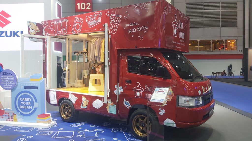 สำหรับโซนการจัดแสดงรถตกแต่งพิเศษ ยังคงคับคั่งไปด้วยไอเดียการตกแต่งที่หลากหลาย นำเสนอแนวทางสำหรับลูกค้าที่ชื่นชอบการตกแต่งรถที่ไม่เหมือนใคร ในครั้งนี้ซูซูกิภูมิใจเสนอ การนำ SUZUKI CARRY รถกระบะบรรทุกอเนกประสงค์มาตกแต่ง ภายใต้แนวคิด Laundry Carry เพื่อสร้างแรงบันดาลใจให้แก่ผู้ประกอบการธุรกิจซัก อบ รีด และยังมุ่งหวังที่จะจุดประกายให้เกิด การขยายเส้นทางธุรกิจให้เติบโต ไปจนถึงผู้ที่กำลังสนใจอยากสร้างอาชีพในยุคใหม่ เนื่องจากปัจจุบัน ธุรกิจรับซักรีด กำลังมีทิศทางการเติบโตที่ดีและมีการขยายตัวเป็นอย่างมาก เพราะสามารถตอบโจทย์การใช้ชีวิตของคนรุ่นใหม่ที่ใช้ชีวิตเร่งรีบ ต้องการลดภาระในครัวเรือนลง จึงกลายมาเป็นอีกหนึ่งธุรกิจที่น่าสนใจ ซึ่งที่ผ่านมา SUZUKI CARRY มีบทบาทสำคัญในการต่อยอดให้กับเจ้าของธุรกิจ ด้วยการเลือกใช้งานรถยนต์ SUZUKI CARRY ในการให้บริการรับส่งเสื้อผ้าซักรีดถึงมือลูกค้า ช่วยยกระดับงานบริการของผู้ประกอบการให้เข้าถึงผู้บริโภคให้จนได้รับความสะดวกสบายมากขึ้น
