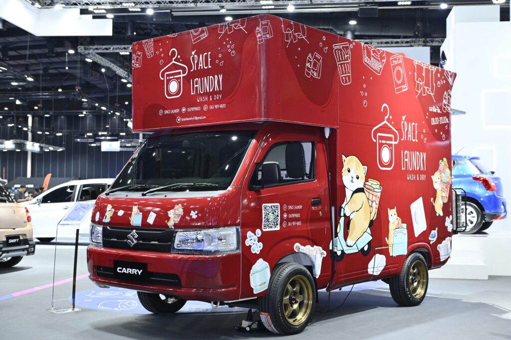 ด้วยความอเนกประสงค์ของ SUZUKI CARRY สามารถปรับแต่งตัวรถได้หลากหลายเพื่อตอบโจทย์ทุกธุรกิจ เมื่อนำผสมผสานเข้ากับแนวคิดทางธุรกิจด้วยการนำมาตกแต่งดัดแปลงให้กลายเป็น Laundry Carry ในครั้งนี้ เราจึงมีความเชื่อมั่นว่าจะสามารถส่งเสริมธุรกิจของผู้ประกอบการ หรือ ช่วยเพิ่มแนวทางในการสร้างธุรกิจให้แก่คนไทยได้เป็นอย่างดี