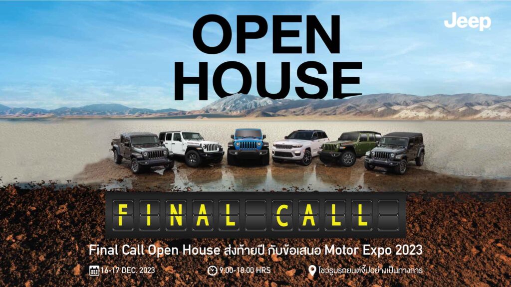 จี๊ป ประเทศไทย จัดกิจกรรมส่งท้ายปี ‘Jeep Final Call Open House’ ชวนทดลองขับ รับข้อเสนอเดียวกับ มอเตอร์ เอ็กซ์โป 2023