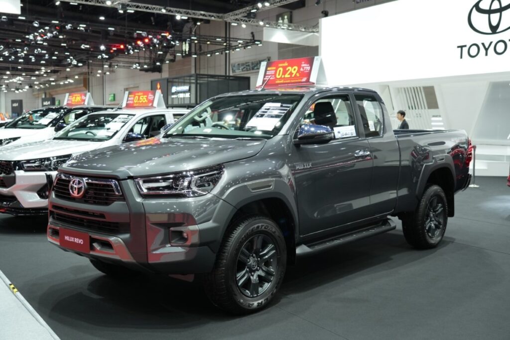 “และเรายังมีรถยนต์ยอดนิยมอีกหลายรุ่น ทั้ง Yaris ATIV, Yaris Hatchback และ Fortuner อีกทั้ง ยังมีรถยนต์อเนกประสงค์ 7 ที่นั่ง ที่สุดของเพื่อนคู่ใจสายครอบครัวระดับพรีเมียม INNOVA ZENIX และ Veloz มาให้ชมภายในงานนี้ด้วย ในส่วนของรถกระบะ นำทัพโดย Hilux Revo รุ่นปรับปรุงใหม่ ปี 2024 เริ่มจาก Hilux Revo GR-Sport 4×4 กระบะรุ่นเรือธงสมรรถนะเหนือชั้น ที่ผ่านบทพิสูจน์บนเส้นทางสุดทรหดในประเทศออสเตรเลีย และสามารถคว้าชัยชนะจากการแข่งขันสุดโหดในรายการ Asia Cross Country ที่เพิ่งจบไปเมื่อวันที่ 17 สิงหาคมที่ผ่านมา รุ่นต่อมาคือ Hilux Revo-D Prerunner และ Hilux Revo Smart Cab Prerunner ที่โดดเด่นด้วยช่วงล่างซับแรงกระแทกดีเยี่ยม มอบความสบายให้ทุกการเดินทาง และยังมี Hilux Revo Z-edition แต่งสนุก ถูกใจสายแต่งรถแน่นอนครับ สำหรับผู้ประกอบการต่างๆ เราขอนำเสนอ Hilux Champ กับแพ็กเกจต่อเติมรถ สร้างธุรกิจเคลื่อนที่ในฝันได้ ครบ จบ ในที่เดียว”