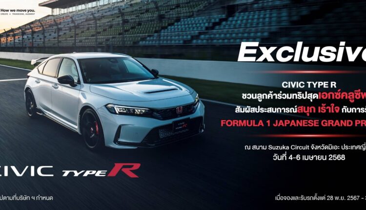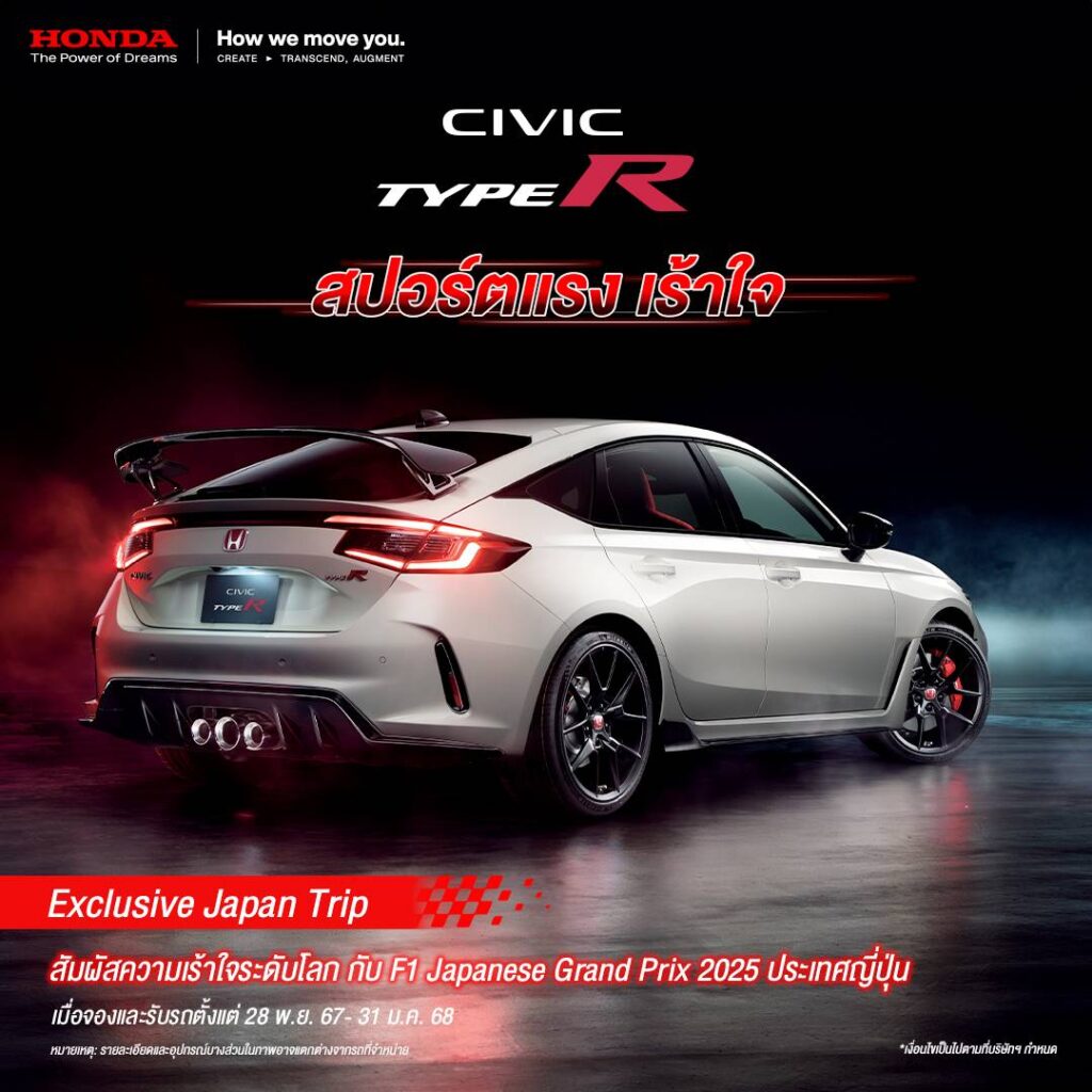 บริษัท ฮอนด้า ออโตโมบิล (ประเทศไทย) จำกัด ชวนลูกค้าที่ชื่นชอบในจิตวิญญาณความสปอร์ต ร่วมเป็นเจ้าของ ฮอนด้า ซีวิค ไทป์ อาร์ พร้อมมอบทริปสุดเอกซ์คลูซีฟ รับปีใหม่ ร่วมชม F1 Japanese Grand Prix 2025 ที่ Suzuka Circuit จังหวัดมิเอะ ประเทศญี่ปุ่น
