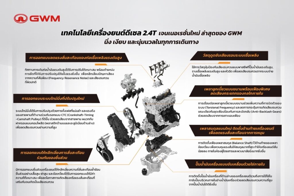 GWM ชำแหละเครื่องยนต์ดีเซล 2.4T เจนฯ ใหม่ล่าสุดของ GWM TANK 300 DIESEL เผย 7 นวัตกรรมการดีไซน์เครื่องยนต์ ที่สร้างความนิ่ง เงียบ และนุ่มนวลในทุกการเดินทาง